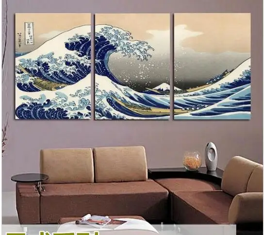 Japon peinture paysage toile peinture 3 panneaux art grande mer Vague de Kanagawa Katsushika japonais peinture à l'huile | AliExpress