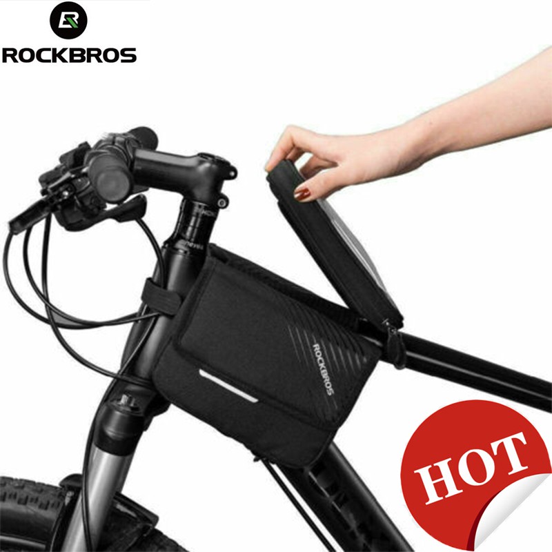 Rockbros Bike Frame Bag 6 0 Touch Screen Waterproof Cycling Portable Bag Blue Bicycle Bags Panniers